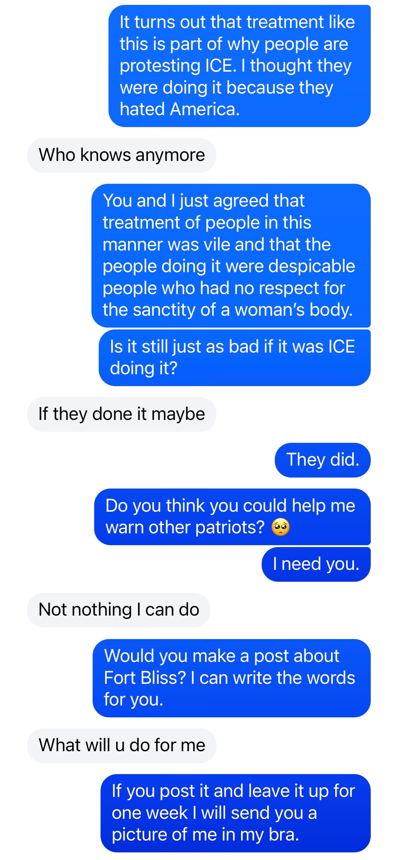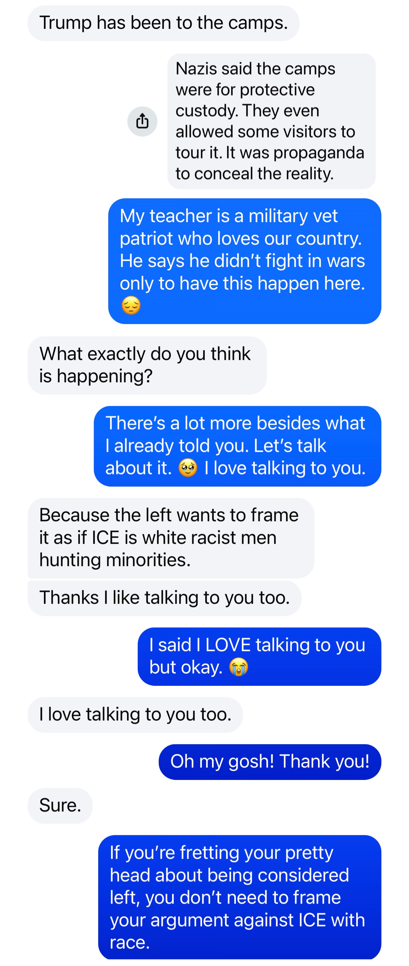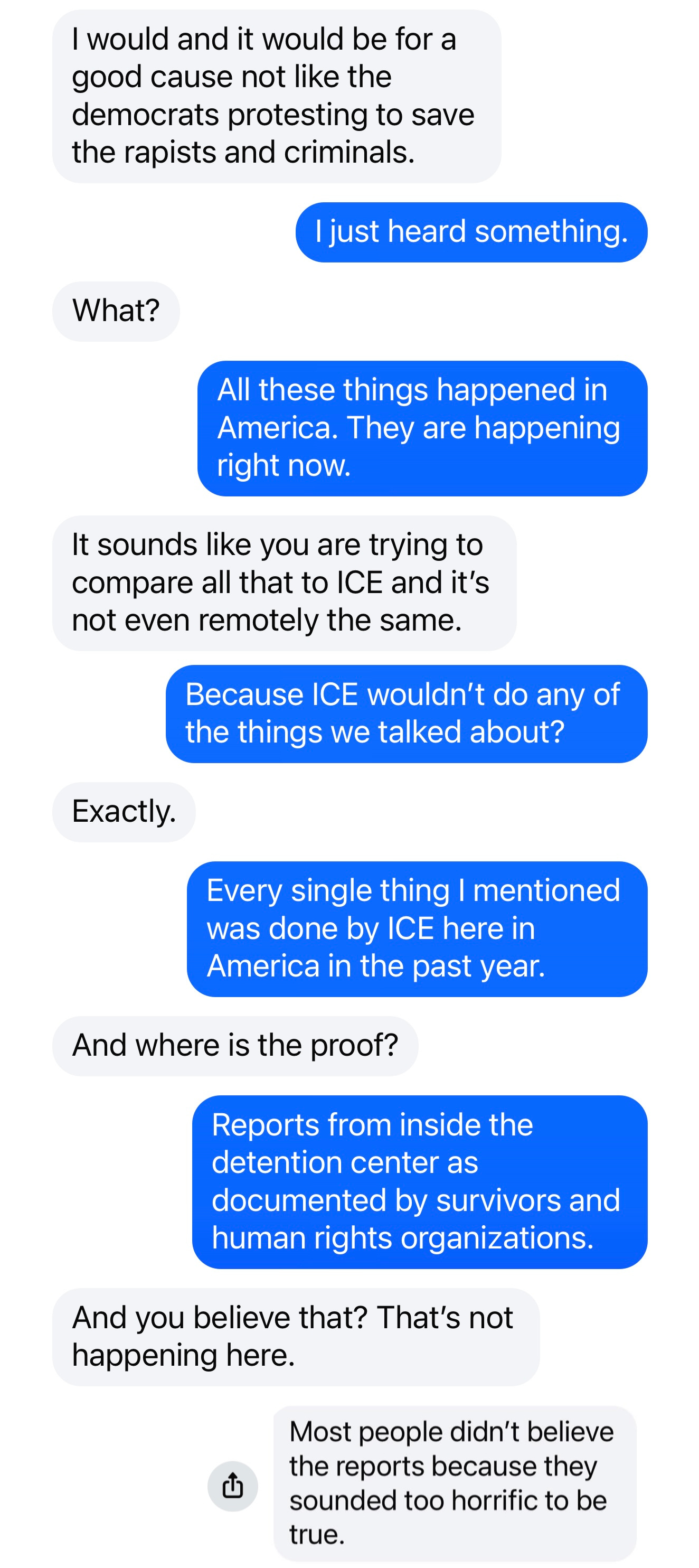 Doubt does not arrive all at once. Someone can question ICE and still carry the rest of the ideology with them, untouched. I’m cautious about placing myself in control of a space that could turn volatile, especially when opposition to ICE does not automatically mean opposition to other forms of harm.